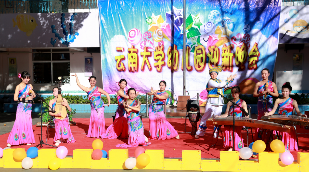 为丰富职工文化生活,展现新年新风貌,云南大学幼儿园于2017年1月8日下午,诚邀家长代表及职工家属在园内举办了“迎春欢聚会 喜乐一家亲”文艺联欢活动。全园教职工热情高涨,积极参与,大家以情为舞,以乐动人,以智舒怀,以爱暖心,活动现场热闹非凡,掌声不断。平日里,幼儿盥洗室内不起眼的盆、瓶、罐、桶,经大班教师灵机一变,摇身幻化为悦耳动听的乐器奏乐全场;食堂人员“蜕去”昔日朴素的工作服,为大家带来了一场激情四溢的魅力时装秀。保育老师献上的民族舞蹈《藏家情》,小班年级带来的民乐合奏《傣韵》,更是以精美的服饰,默契的配合,曼妙的舞姿,博得满堂喝彩,并最终喜获“最佳表演奖”的殊荣。