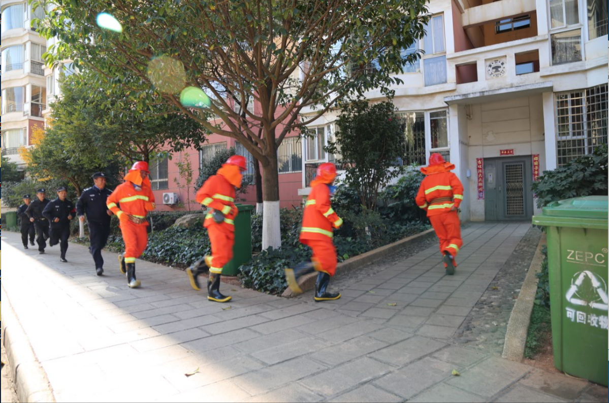 当小高层“火灾”发生时,演练副总指挥罗星查果断下达指令,启动应急预案,按照应急流程指令各小组有序灭火扑救,演练小组成员各司其职,灭火行动组反应迅速,敏捷,奔赴“火场”灭火;救护组迅速用单架将“伤员”抬出,撤离火灾现场;交通疏散引导组认真指挥消防车进入小区;水、电保障组密切注意水电运行情况。最后,大火在五华消防救援人员和演练小组成员密切配合下被迅速扑灭。整个演练过程场景逼真、节奏紧凑,演练小组成员按照消防演练预案要求,圆满完成演练方案的各项预定任务。