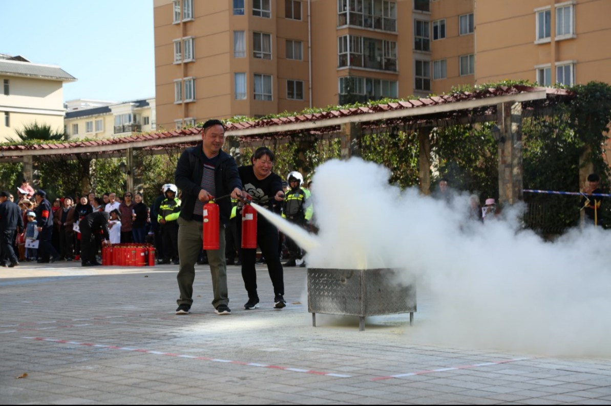 演练当天,五华公安消防大队防火参谋苏琴,云南大学后勤集团党委书记费毅、副书记李秀梅,安全质量办公室主任王慧应邀出席,并现场观摩指导,小区住户、商铺经营户150余人参与演练。
